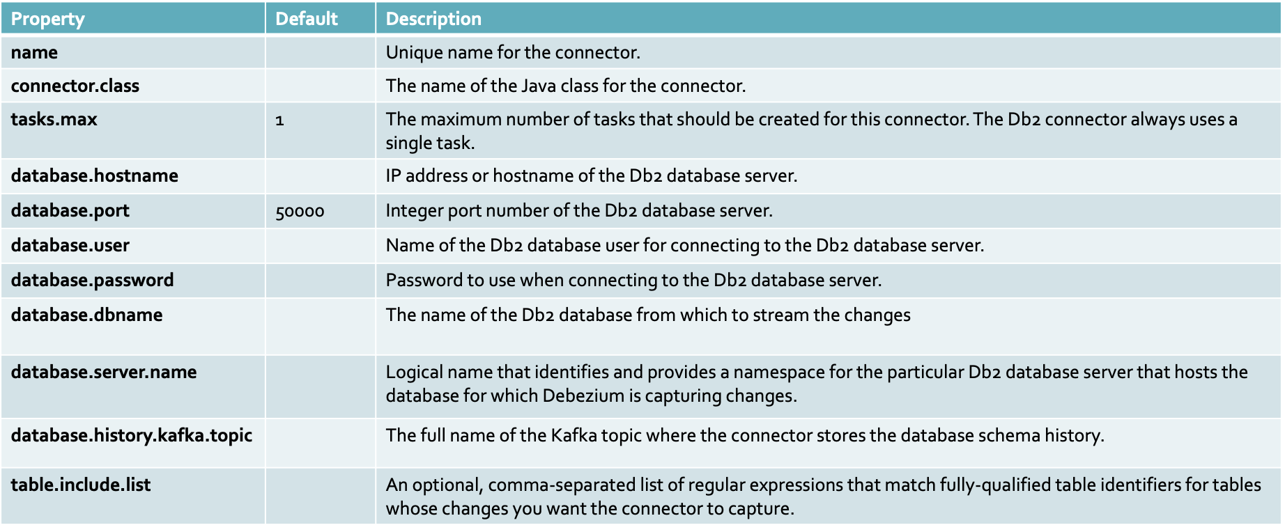 "class": "io.debezium.connector.db2.Db2Connector",